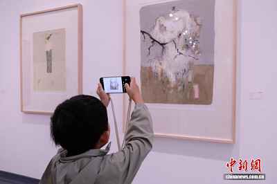 11月8日,小朋友拍摄展出的2010年版画作品《春色》。 林波 摄