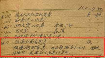 南博向新华社记者出示了专家鉴定记录及有关流程证据:第一次是1961年11月,原文化部组织以张珩(张葱玉)为主的全国书画鉴定专家组到南博进行书画鉴定,张珩、韩慎先、谢稚柳三位专家鉴定后认为:“江南春图卷,伪,一般,陈鎏题引首真,后面题跋完全不对,伪做得很好,原庞家是当真的藏的”。第二次是1964年6月,王敦化、徐沄秋、许莘农三位专家再次鉴定,认为“仇英江南春图卷,假”。