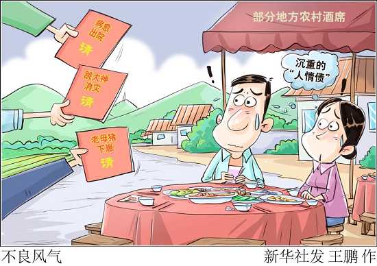 芝麻大小的事情,都要大操大办;再正常不过的家事,也要让左邻右舍送礼。频繁的人情往来中,礼金和“份子钱”成为一项沉重负担,让原本淳朴的乡风民俗变了味,更与勤俭节约的社会风尚背道而驰。