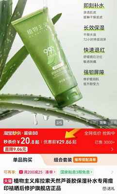 中新网北京4月12日电(左雨晴 佟奕萱) “便宜大碗”“肤感清爽”,既能补水保湿,又能“镇静消炎”“淡斑祛痘”——这让几十元一大碗的芦荟胶在电商平台上备受青睐,月销量动辄突破十万单。