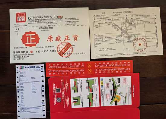 记者在直播间购买的所谓“海外渠道货”,随附的海关税单、POS签购单等交易明细均为空白。记者 陈潇雨 摄