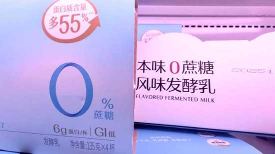 12月4日,在北京某商超酸奶冷柜中,带有“0蔗糖”等标签的商品占据主流位置。新华网记者 刘璐 摄