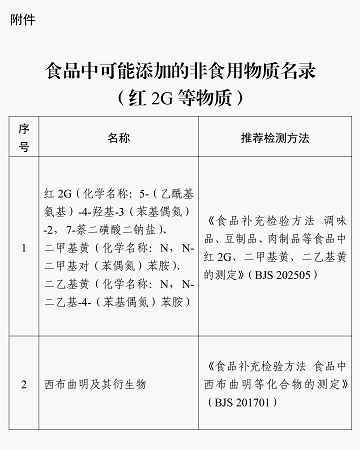 附:食品中可能添加的非食用物质名录(红2G等物质)