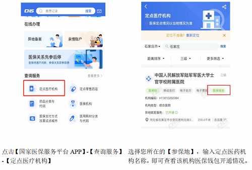 如何查询定点医药机构是否已支持使用医保钱包↓