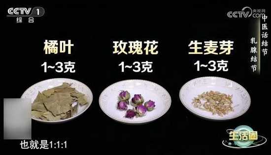 橘叶、玫瑰花、生麦芽,各取1~3克,用热水冲泡饮用,能够疏肝、散结、改善不良情绪,适合乳腺结节人群饮用,也可以用于预防乳腺结节发生。