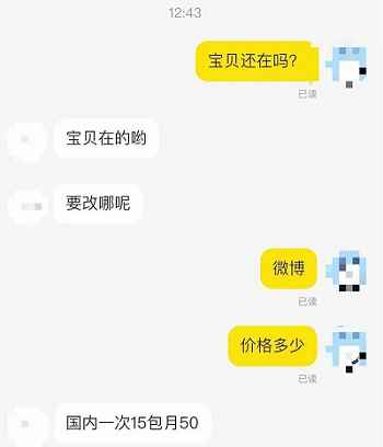 随后,记者私聊卖家,询问修改微博IP属地的价格,卖家表示修改为国内的IP属地一次15元、包月50元,一次修改后不发微博和评论,IP属地就不会变。修改IP属地全程买家自己在手机端操作,卖家不需要登录买家的微博账号。