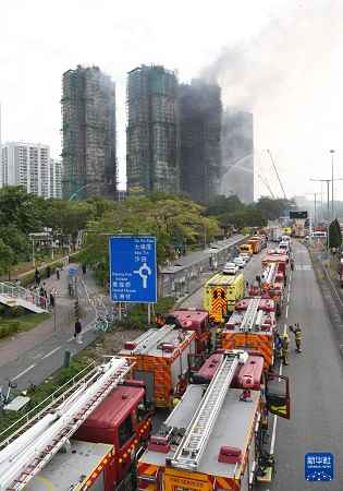 11月27日拍摄的香港大埔宏福苑火灾救援现场。新华社记者 陈铎 摄