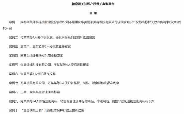 案例目录(最高检网站截图)